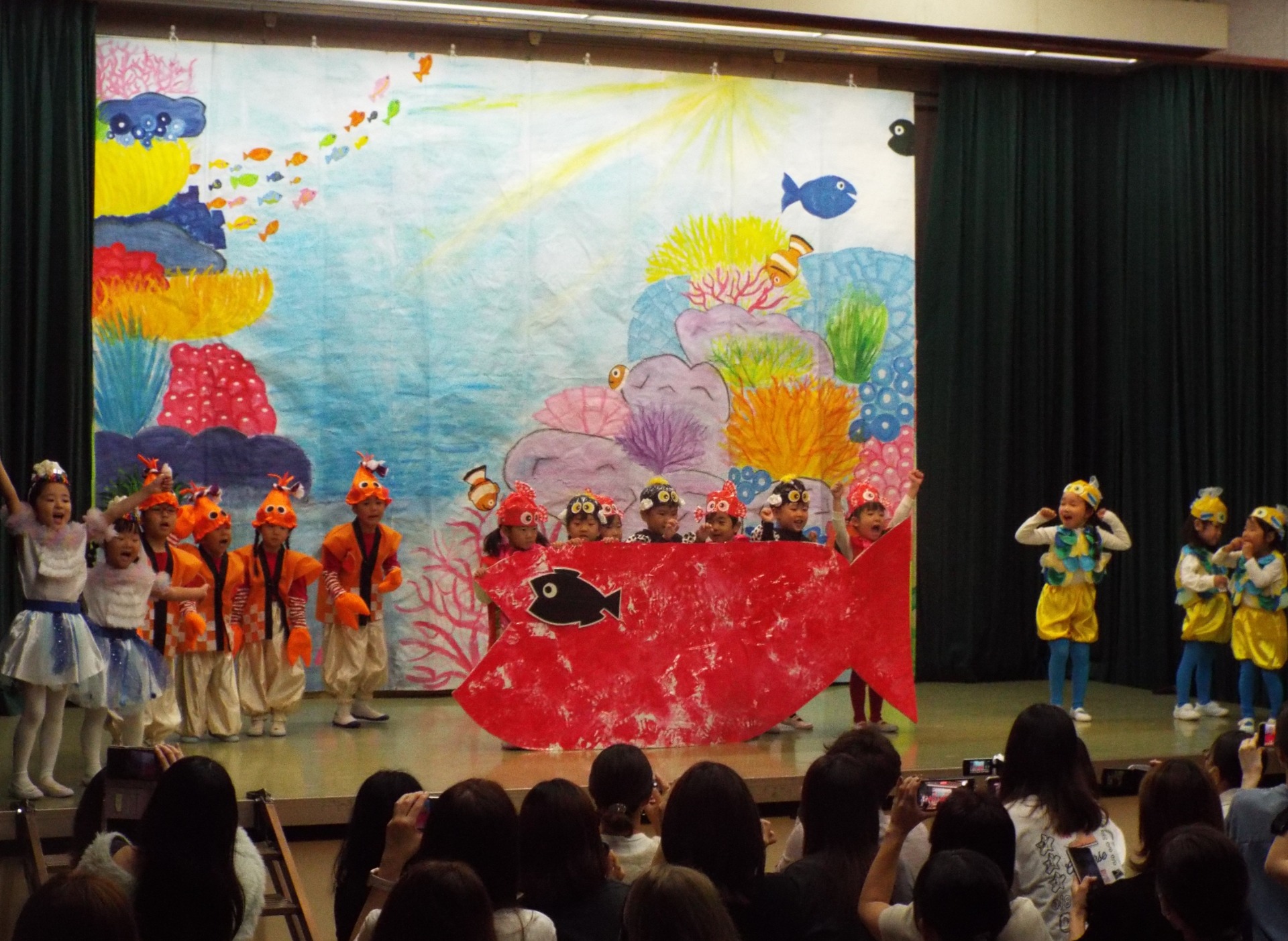 年中組と年長組はオペレッタや劇を発表しました。演目は絵本をよんで、みんなで決めました。役になりきり「最高の笑顔」や「堂々とした姿」素晴らしかったですね!