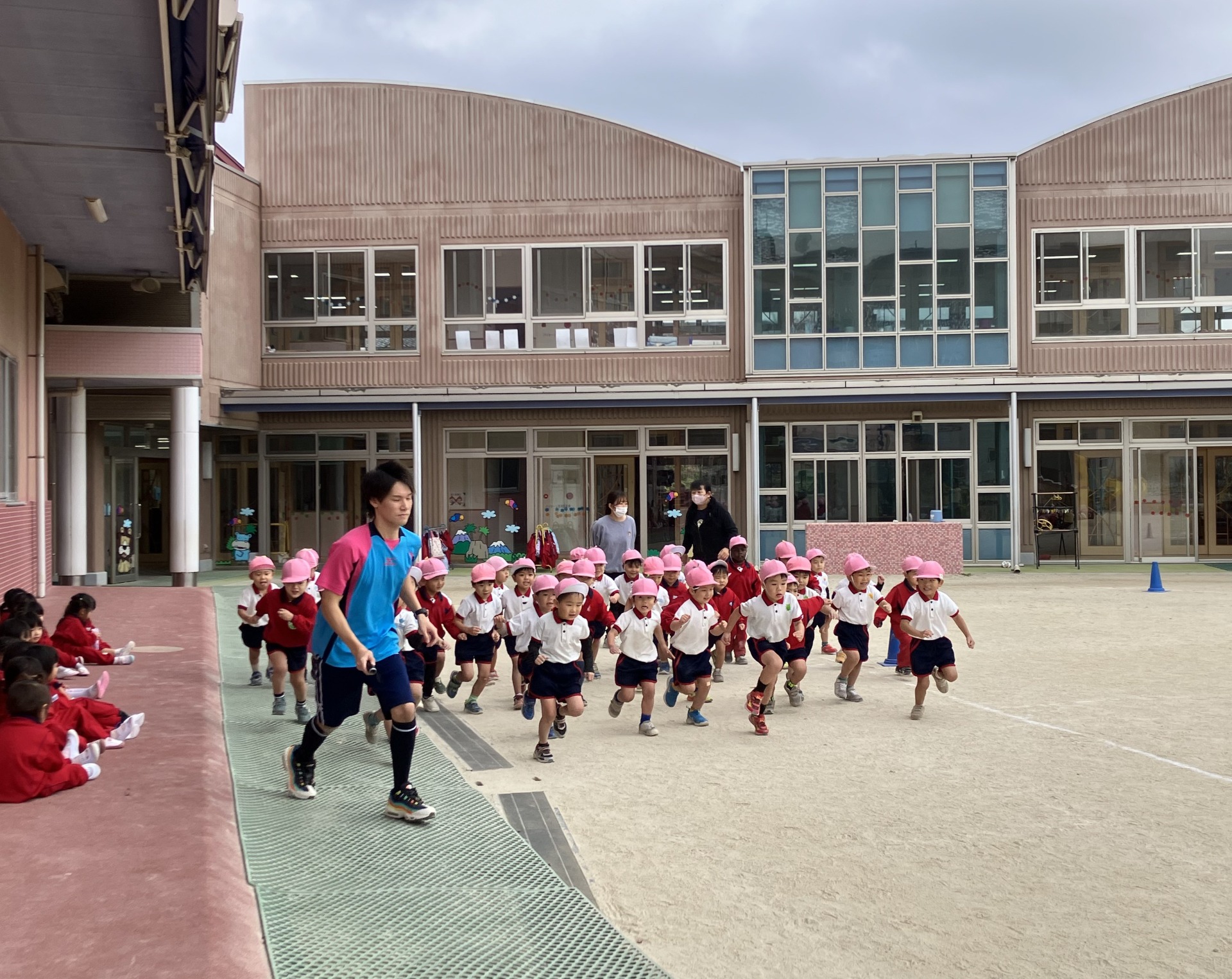転んでも、すぐに起き上がって最後まで全員走りきりました。最後はりゅう先生とハイタッチをしてゴール!みんなとってもがんばりました♬