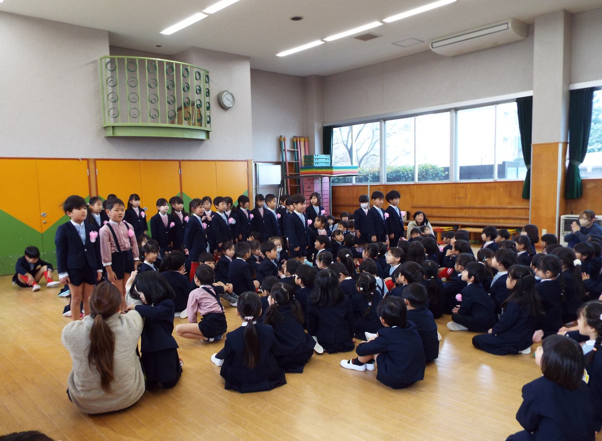今日は2学期の終園式でした。園長先生からは「発表会も上手に出来ました。運動会も尾山台小学校で立派な姿を披露しました。3学期も頑張ってください。」とお話がありました。