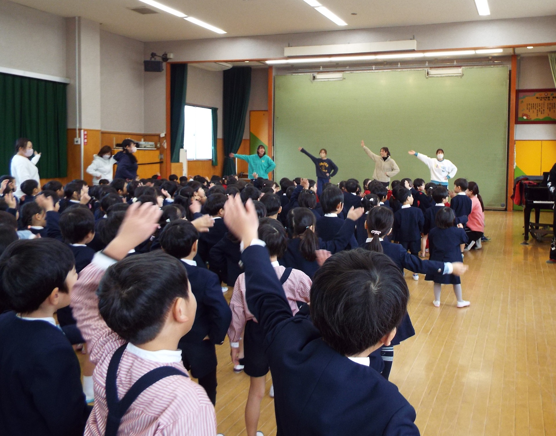 最後は「あわてんぼうのサンタクロース」をみんなで踊って歌って、幼稚園で3学期も頑張るぞ!の気持ちを込めて「エイエイオー!!」のガッツポーズをみんなできめました★みなさん よいお年をお迎えください。