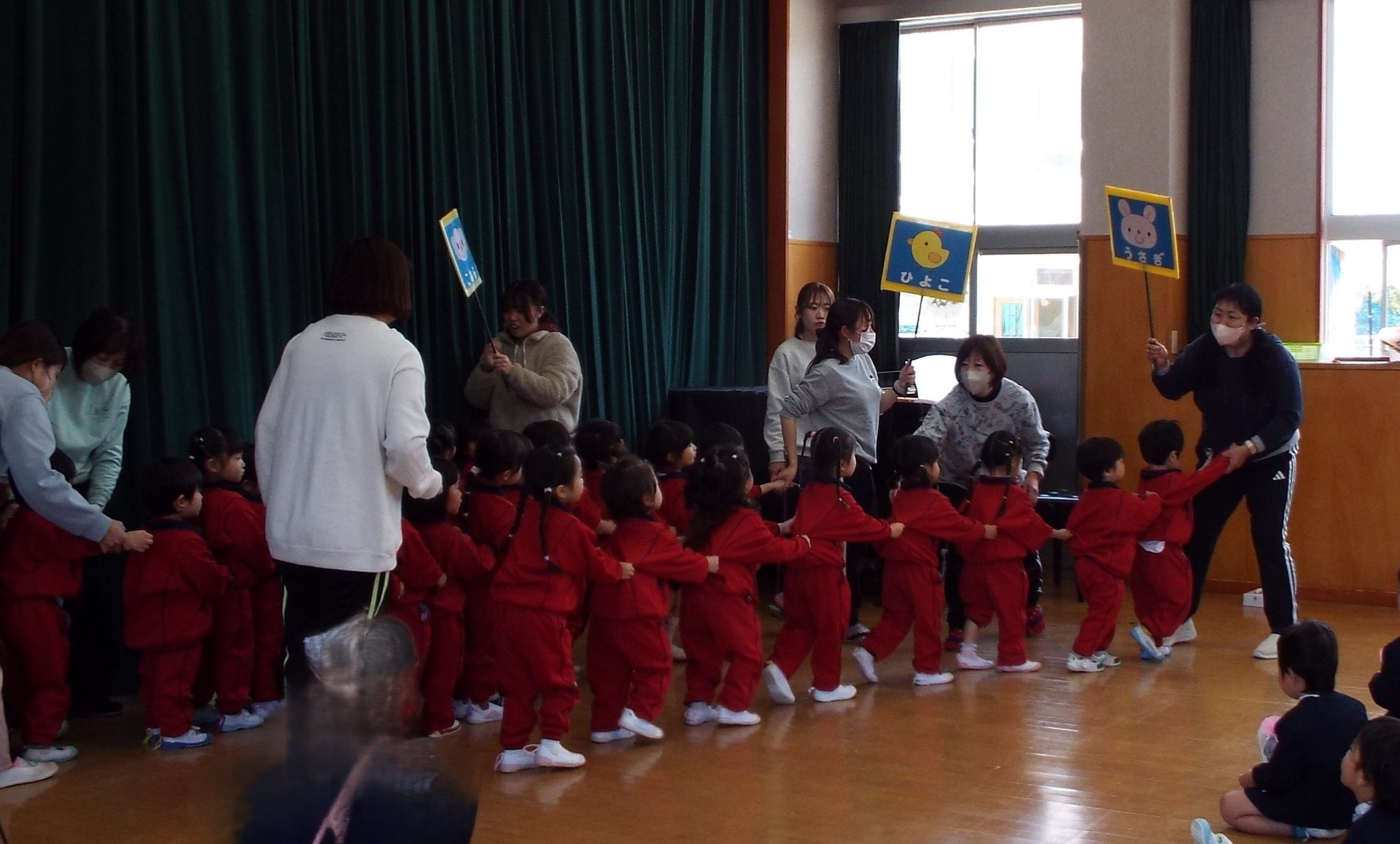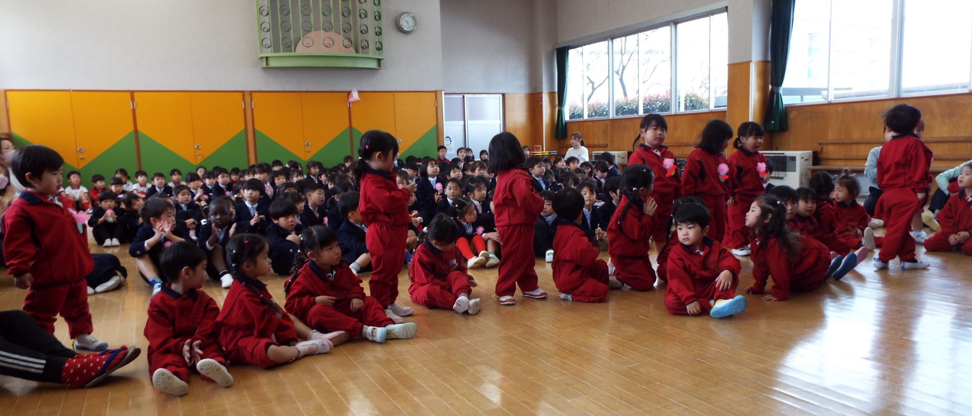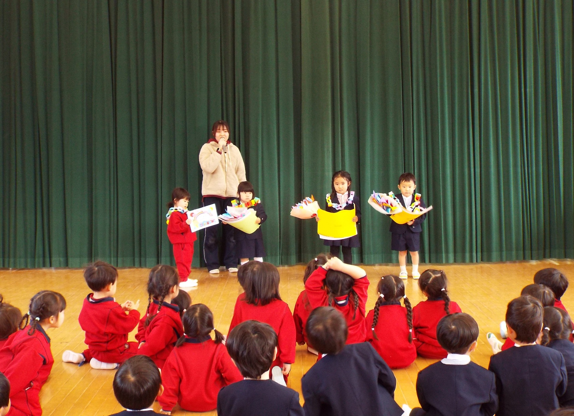 次に、3月で尾山台幼稚園とお別れするお友だちと先生のお別れ会を行いました。遠くに行っても、尾山台幼稚園のことをわすれないで、元気で頑張ってね!