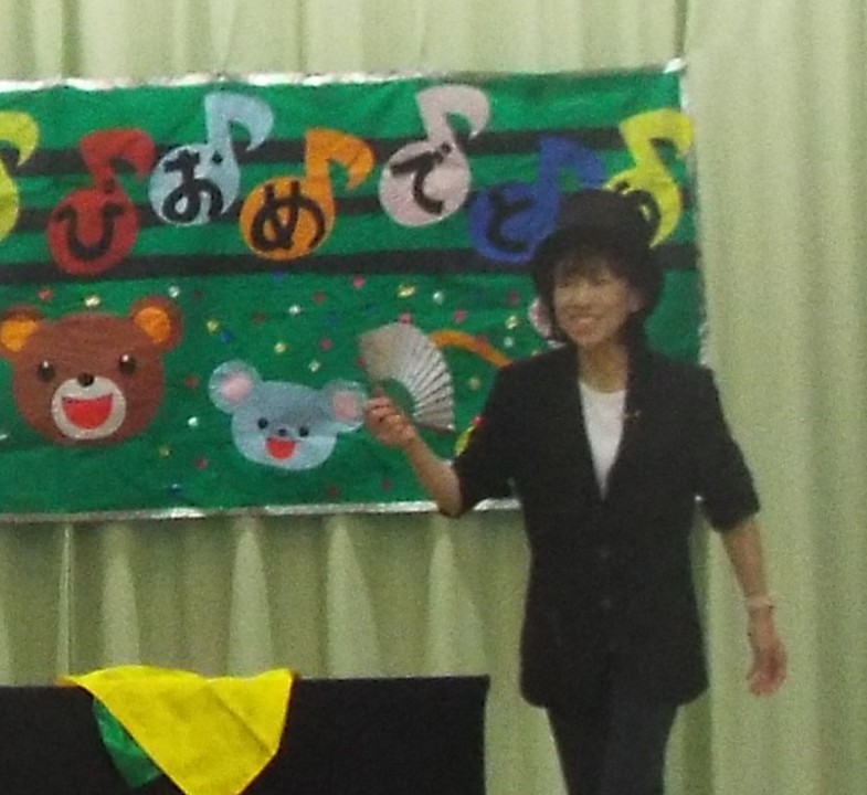 お待ちかねマジックショーでは、みんなでおまじないを唱えると、なみか先生が持っている扇子が・・・
