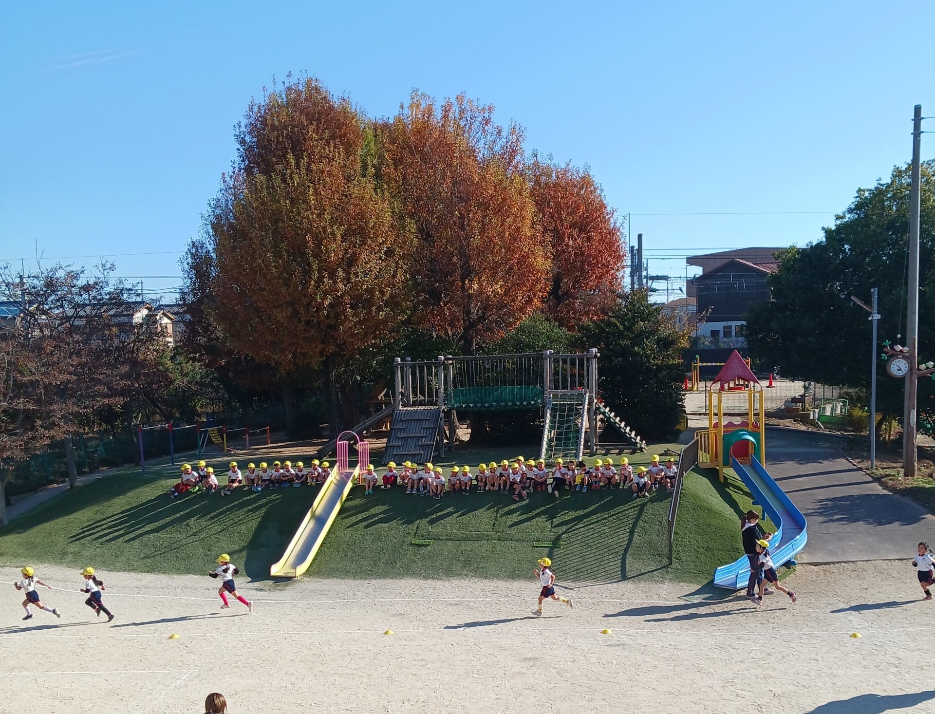 広い園庭を年中組は3周頑張って走ります!
