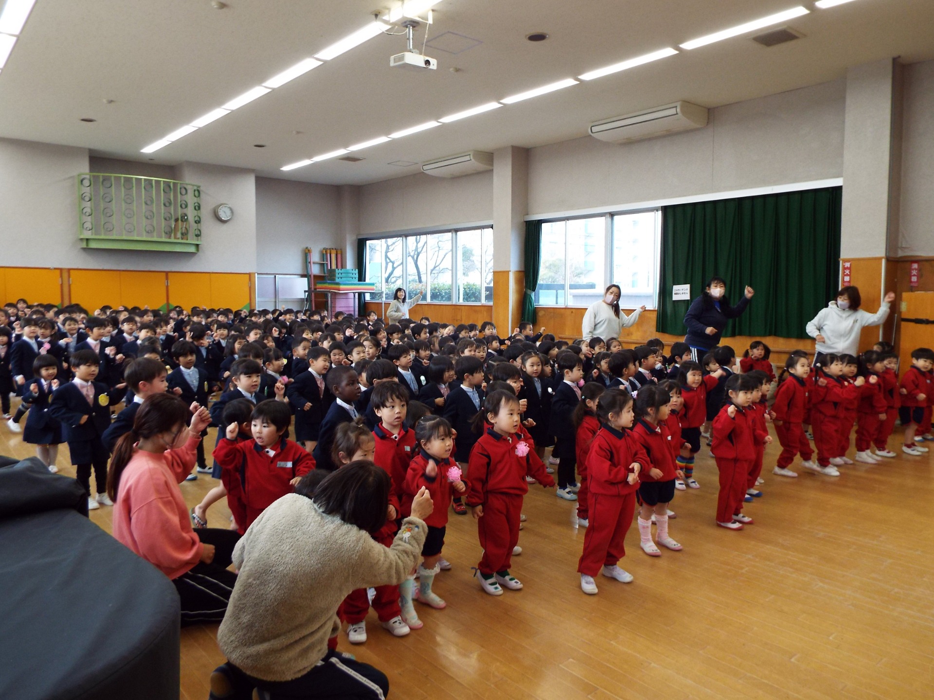 最後は「あわてんぼうのサンタクロース」をみんなで踊って歌って、幼稚園で3学期も頑張るぞ!の気持ちを込めて「エイエイオー!!」のガッツポーズをみんなできめました★みなさん よいお年をお迎えください。